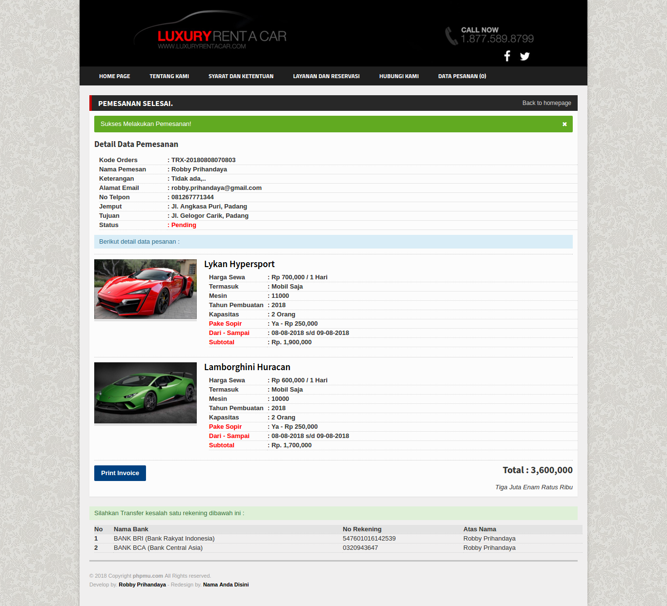 Aplikasi Rental atau penyewaan Mobil Online + Offline seringkali dibutuhkan untuk mempermudah jasa penyewaan Kendaraan, mulai dari mendata kendaraan yang dapat disewakan dan juga untuk mempermudah customer yang mau melakukan booking atau penyewaan secara online. aplikasi ini kita buat dengan menggunakan Codeigniter 3.x database MySQL, jadi akan sangat mudah dikembangkan lagi jika diperlukan khususnya oleh programmer tingkat pemula sekalipun karena untuk codingnya memang sengaja disusun rapi agar mudah dipahami.